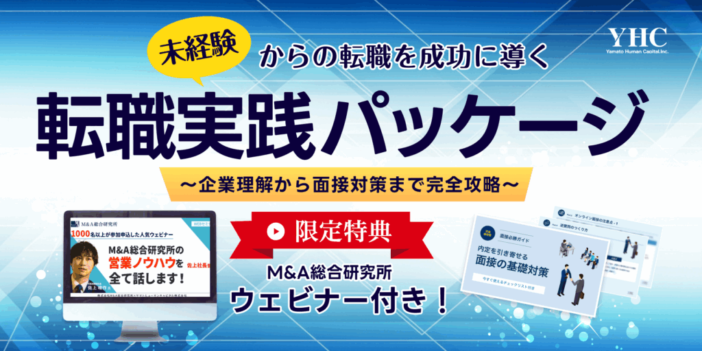 未経験からの転職を数多く支援してきたヤマトヒューマンキャピタルの知見と、1,000名以上が注目したトップ経営者の視点を凝縮した「転職実践パッケージ」を作成しました !